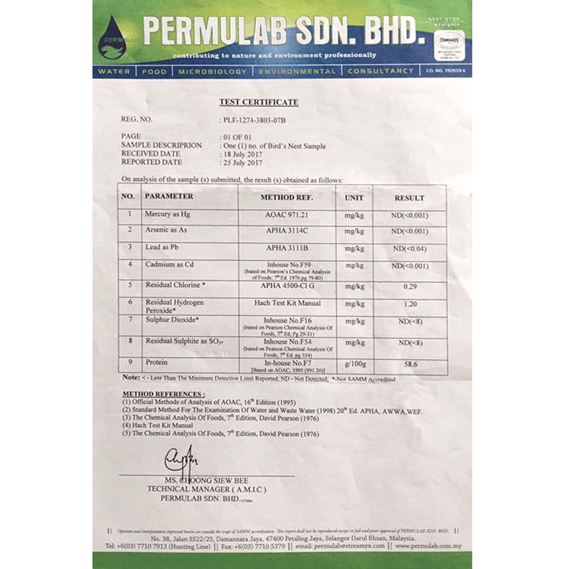 「海外製品だから不安」「本当に安全?」と思われる方もいらっしゃいます。ツバメの巣は非常に高価なものですので低品質が出回りやすい商品です。しかし当店では、関連会社が生産設備を所有しているので、仕入れ段階で低品質のツバメの巣が入ってくることはありません。マレーシア工場ではしっかりとした工程を踏み、厳しい衛生管理のもと全従業員が責任を持って、安心・安全で高品質なツバメの巣を生産しております。