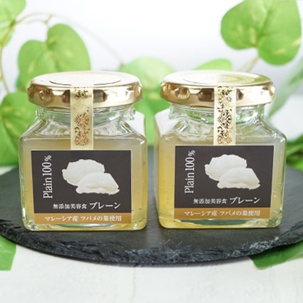 ツバメの巣100%のプレーンになります。甘みがついており、フタを開ければすぐに食べられるタイプです。2本セットになります。